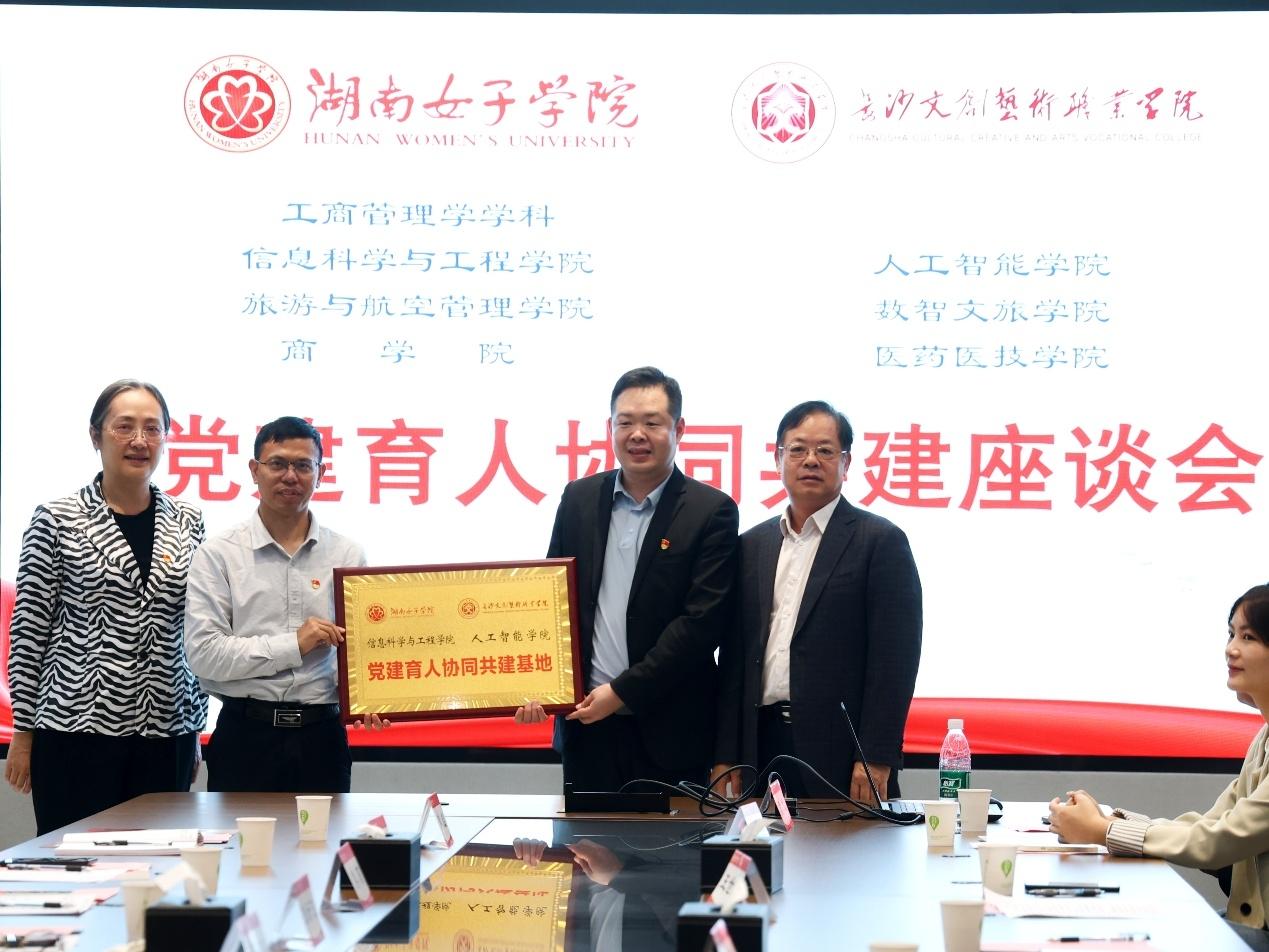 本网讯(信息科学与工程学院 李治)为了加强党建引领和促进学科发展,10月14日,湖南女子学院信息科学与工程学院党委书记熊莉、副院长蔡佐威、人工智能系主任徐丽莎以及学院督导李治一行,与商学院、旅航院领导和教师代表一同奔赴长沙文创艺术职业学院参加关于“党建育人、协同共建”的联合党建活动。