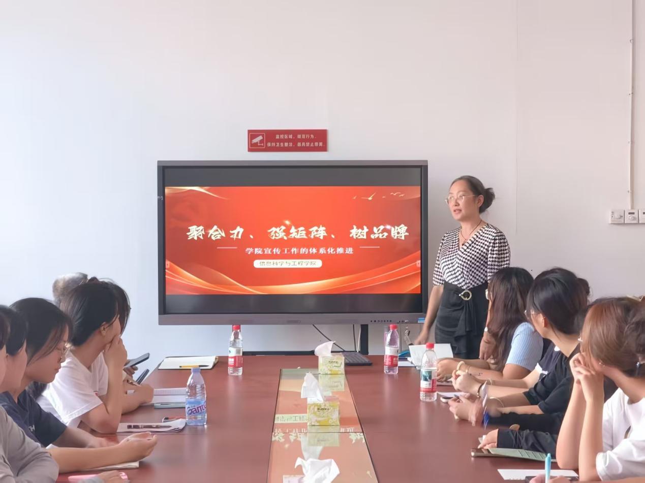 本网讯(信息科学与工程学院 贺佳妮)2025年10月10日,我院党委书记熊莉对学院团学会各部门进行宣传培训,帮助同学们提升宣传能力。党委副书记黄毅参加了本次培训。