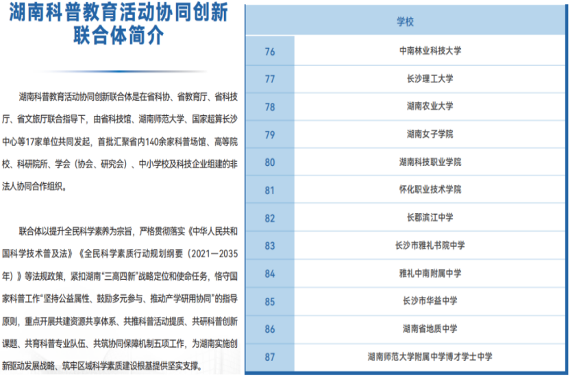湖南女子学院入选湖南省科普教育活动协同创新联合体首批单位联合体成立仪式成功举办