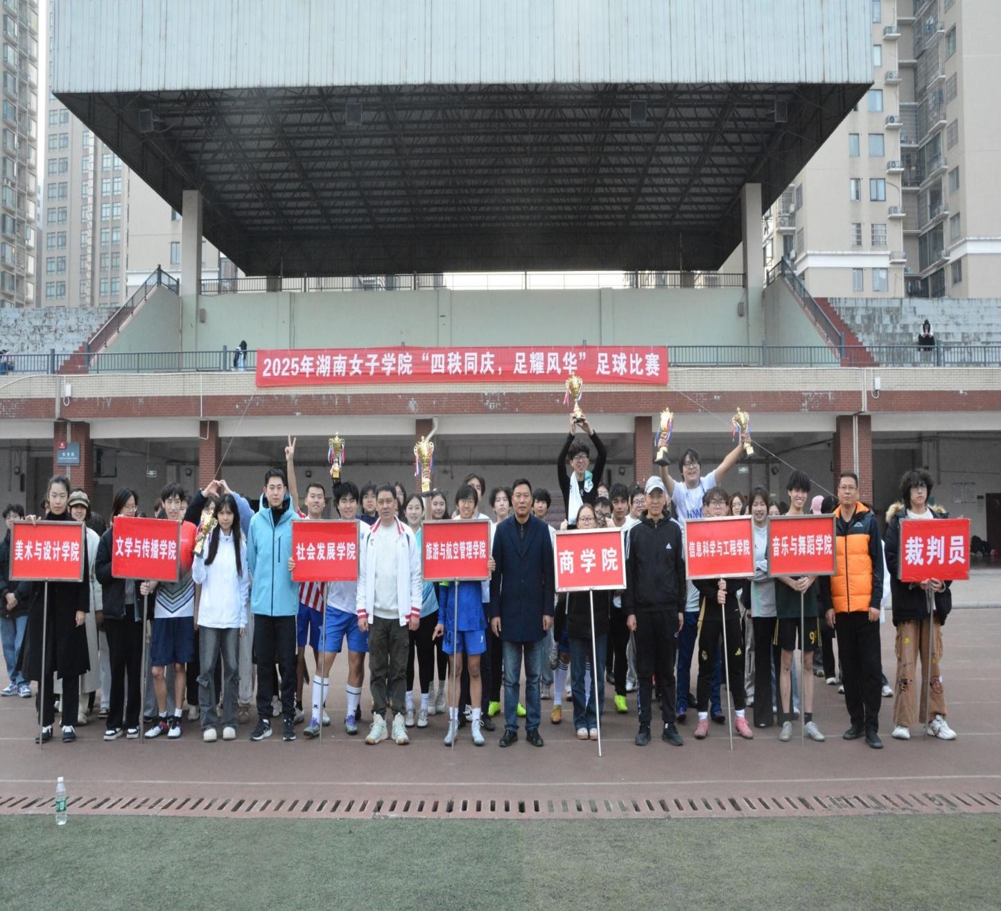 本网讯(信息科学与工程学院 潘美君)11月26日至12月9日,2025年湖南女子学院“四秩同庆,足耀风华”校园足球比赛在学校足球场展开,赛事由体育部主办、校学生会体育部承办,设男子八人制、女子五人制双赛道,共有来自七个院系的14支队伍、200余名运动员参与角逐。